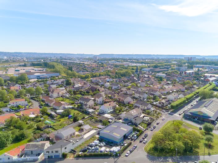 Le long de la rue des Martyrs, on prend de la hauteur : deux ambiances urbaines se côtoient, riches de leurs histoires et porteuses d’identités distinctes. Elle fait le lien entre l’ancien village et la nouvelle zone, appelée Grand Quevilly Extension, situés de part et d’autre de la Sud 3.