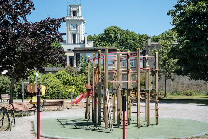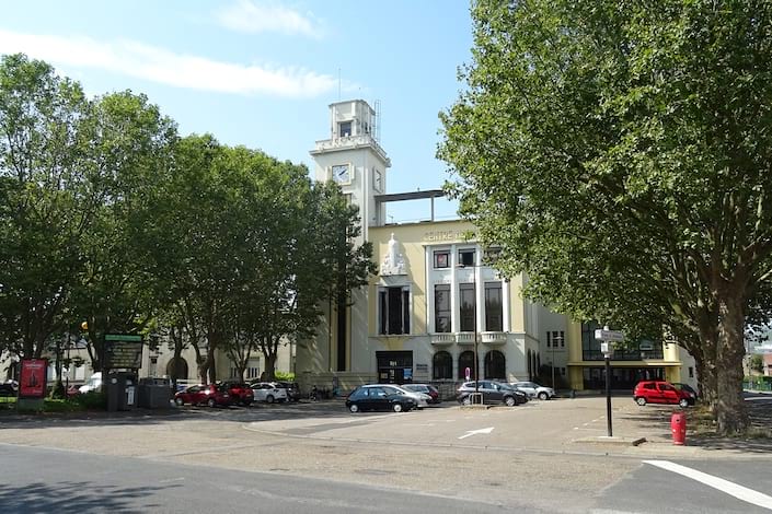 La place aujourd’hui devenue un parking, est bordée par le centre culturel Marx Dormoy et l’ancienne école Maire Curie. Construits dans les années 1930, ils sont les témoins d’une période de construction intense, portée par Tony Larue. Maire bâtisseur, il lance de grands travaux de construction et érige de nombreux équipements publics qui modernisent la ville et font progressivement du Bourg un centre administratif.